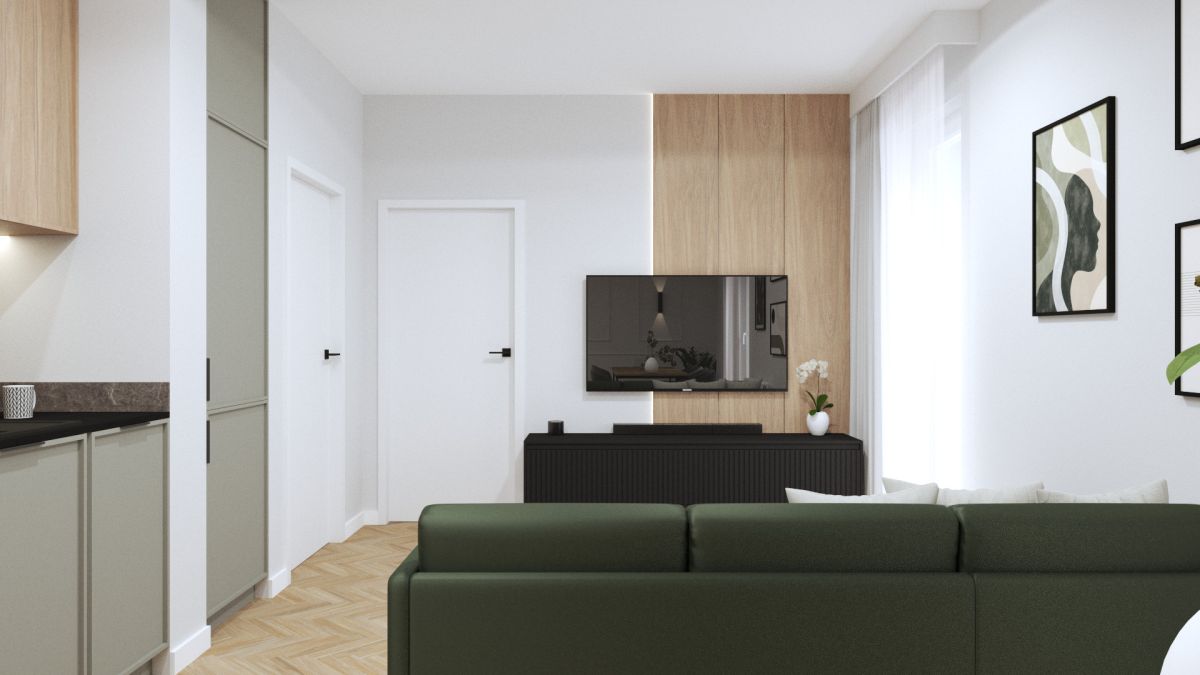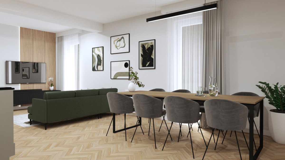 Elegancko i ponadczasowo zaaranżowane mieszkanie na 6 piętrze świeżo powstałego apartamentowca na powierzchni 74,51m2 oferuje:
