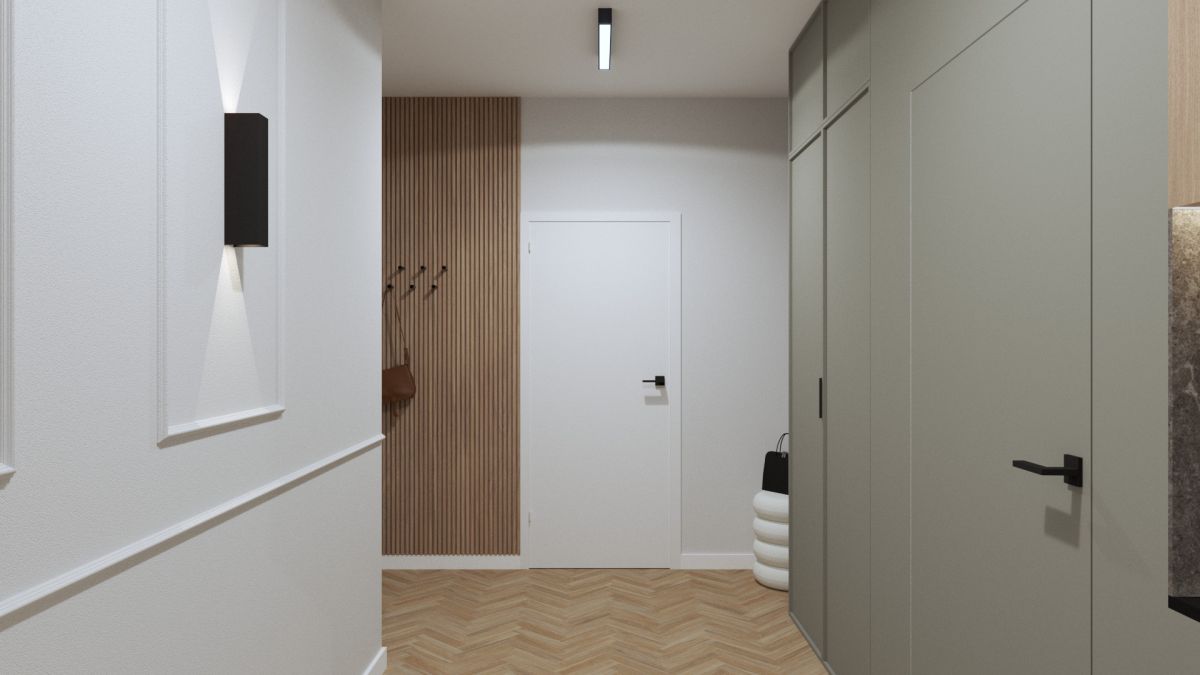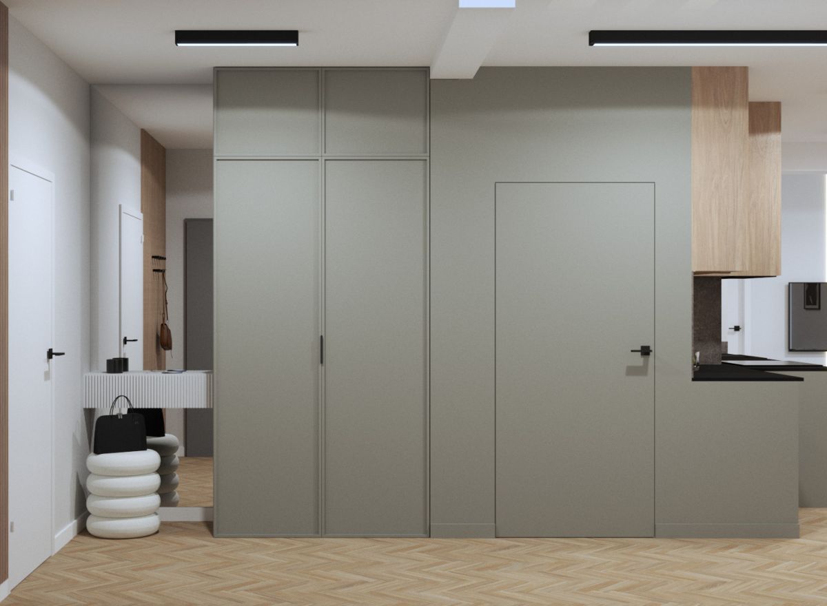 przedpokój z szafą w zabudowie wykonaną przez stolarza pod wymiar.