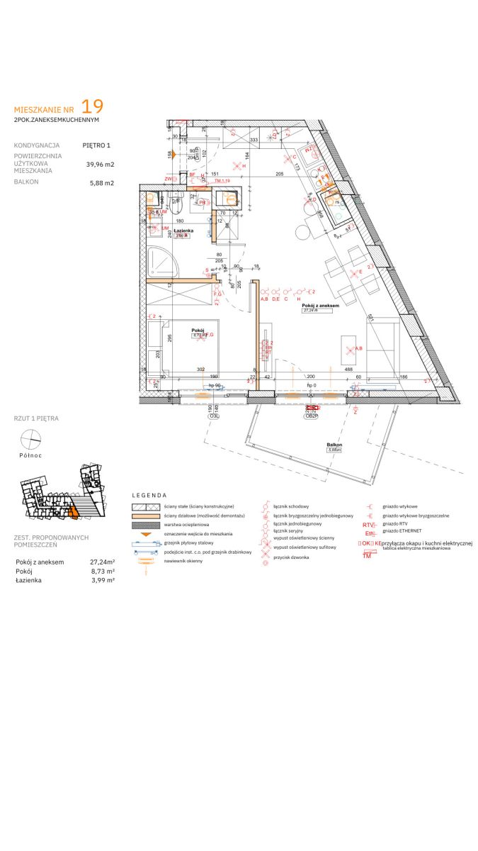 Do mieszkania przynależy balkon 5,88 m2, z którego mamy widok na wschód.